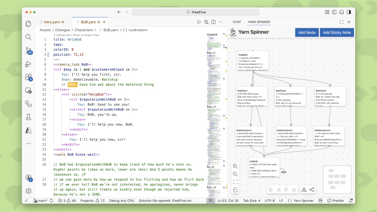 Yarn Spinner tools help you plan, write, integrate, and test dialogue in your games.