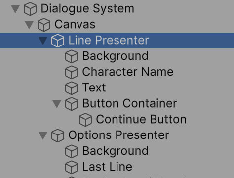 - Line Presenter: Displays text dialogue to the player