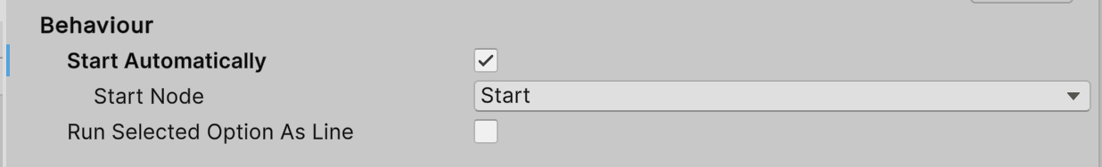 Settings for starting automatically, and running a specific node, found on the Dialogue Runner component.