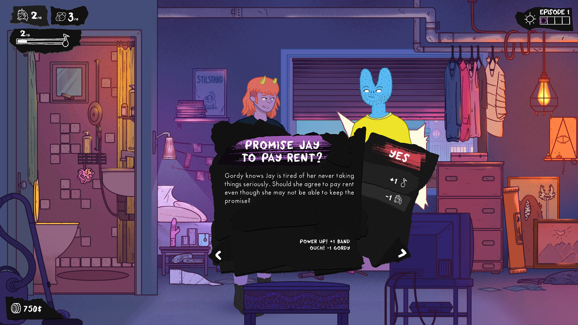 Navigate band practice with rhythm game minigames, work shifts at the diner to make ends meet, maintain friendships, and manage your wellbeing while making choices that determine the band’s fate. The game features hand-drawn art with colorful, surreal aesthetics inspired by shows like Bojack Horseman and Tuca & Bertie.